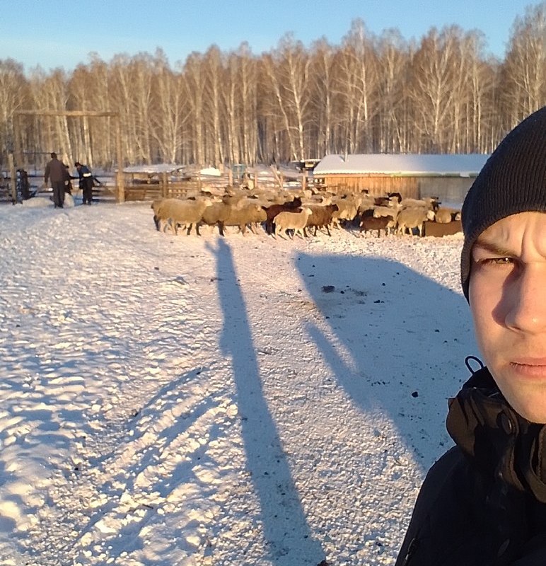 Сегодня перевозили сено на ферму. Валера устроен скотником, научил его обращаться с лошадью, он возил сено на санях, по одному рулону за раз. Помимо Валеры работают ещё 3 человека, они перевозили сено на газели по три рулона за раз. Так как с трактором из них никто не знаком, грузил их я