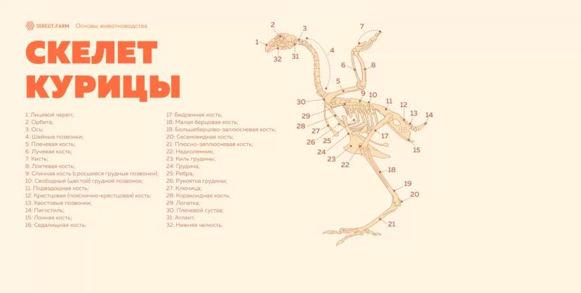 Пищеварительная системы курицы значительно отличается от пищеварительной системы других моногастричных животных. У птицы нет зубов, следовательно отсутствует процесс жевания. Пищевод идет прямо в зоб, где начинается переработка корма. Из зоба пищевая масса проходит в преджелудок (железистый желудок) – толстостенный орган, расположенный непосредственно у преджелудка. Здесь поступивший корм временно сохраняется, пока обильно выделятся пищеварительные соки. После этого проходит в преджелудок, мускулистый орган, который обычно содержит камни и крупнозернистый песок, где пищевая масса измельчается и перемалывается. Затем продвигается по тонкому кишечнику, слепой кишке и толстому кишечнику к клоаке.