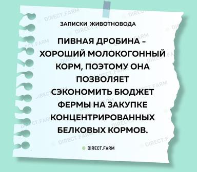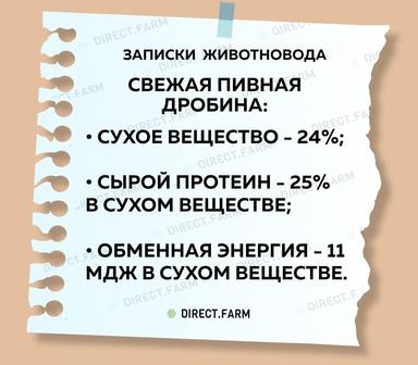 Благодаря своему ценному питательному составу, является хорошим молокогонным кормом.Отход пивоварения позволяет сэкономить бюджет фермы на закупке концентрированных белковых кормов.