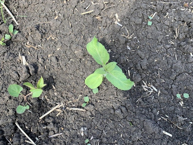 По предложенным фото я компетентен с Надеждой Викторовной. Видно что на поле влаги маловато. Подсолнечнику в эту фазу ( две пары листьев) требуется наиболее оптимальное как минеральное питание, так и продуктивная флага - это все равно как та же фаза кущения у зерновых.