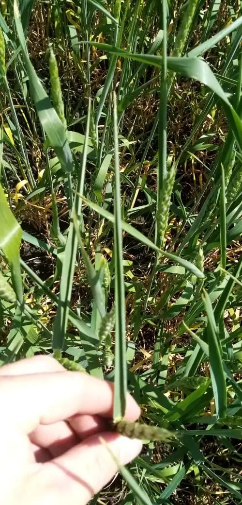 ВОПРОС: На пшенице фланговый лист сворачивается в трубочку, сохнет, также есть повреждения на колосе. Подскажите, какие могут быть причины этого? Видео с полях в приложении.