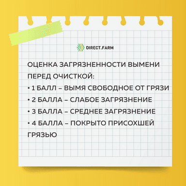 🔸Оценка загрязненности вымени перед очисткой: