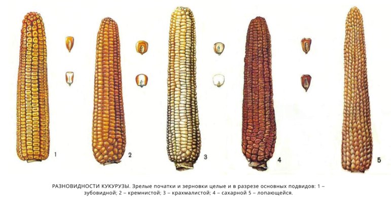 Вид культурной кукурузы Zea mays L. включает 6 подвидов, различающихся между собой следующим признакам: