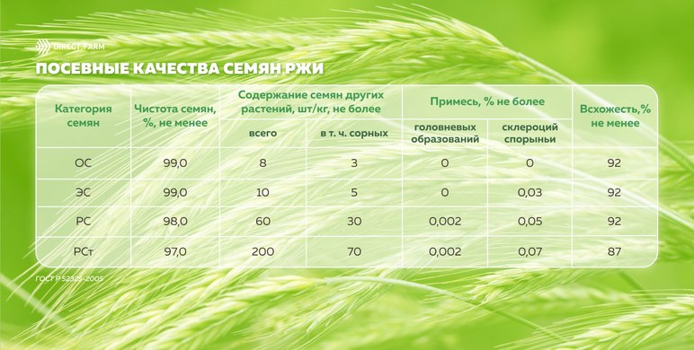 Посевные качества семян ржи должны соответствовать требованиям ГОСТ Р 52325-2005.