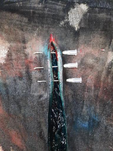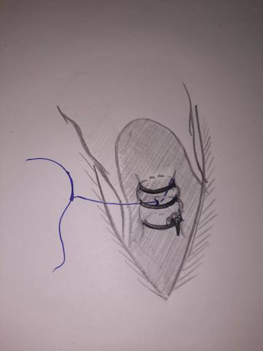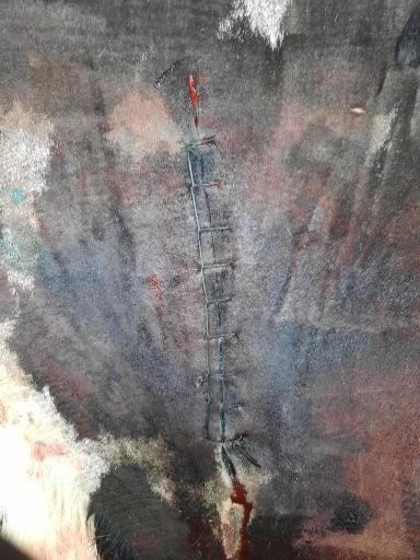 Теперь этап освобождения сычуга от газов. В левую ладонь берём иглу с шлангом (у меня бывшая капельница и игла 2,0×70). Иглу берём острием к пальцам, что бы не поранить внутренние органы. Так же наматываем небольшой запас трубки, при спускании газа, сычуг будет уходить вниз, и руки может не хватить. Проделываем рукой путь к сычугу как было описано выше, и теперь сверху прокалываем иглой сычуг, пойдёт воздух с немного едким запахом. Когда сычуг начнёт опускаться вниз отпускаю запас трубки. А когда воздух совсем перестаёт идти, значит газы из сычуга все вышли и он опустился на место. Аккуратно достаём иглу и трубку. Теперь нам нужно зафиксировать его правильное положение. Самый быстрый способ это достать сальник и перебираться по нему вниз, находим пилорус. Пилорус фиксирую кетгутом непрерывный швом, 3-4 стежкам на расстоянии 1-2 см и последний шов вывожу в середину валика. Так площадь натяжения будет больше и не будет разрывов. Этим же кетгутом, фискирую его к нижней части разреза, и зашиваю первый слой брюшной стенки снизу вверх непрерывным швом перед последними стежками заливаю 100 мл амоксициллина . Далее сверху вниз сшиваю мышцы, между цепляя первый слой. Шкуру зашиваю полигонов швом Ревердена- Мультановского но прокалываю не самой иглой, а заранее прокалываю иглами 1,6×40 места для будущий стежков. На все уходит 25-30 минут, если нет осложнений у коровы. Далее внутривенно 400 мл 40% глюкозы, 400 мл кальция борглюконата, 20 мл флунекса. Коровка становится на лечение на 3 и 5 день 50 мл амоксицилина внутримышечно. 2 и 3 день так же внутривенка, нпвс 5 дней подряд. Шов обрабатываю фортиклином.