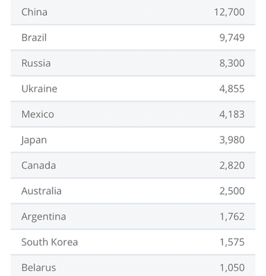 8300 на 145 миллиона россиян получаеться 57.23 литра на человека. Но а учитываются туристы и люди на заробатках из других стран нет!