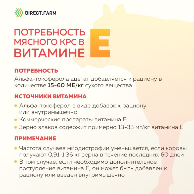 Потребность мясного скота в витамине Е