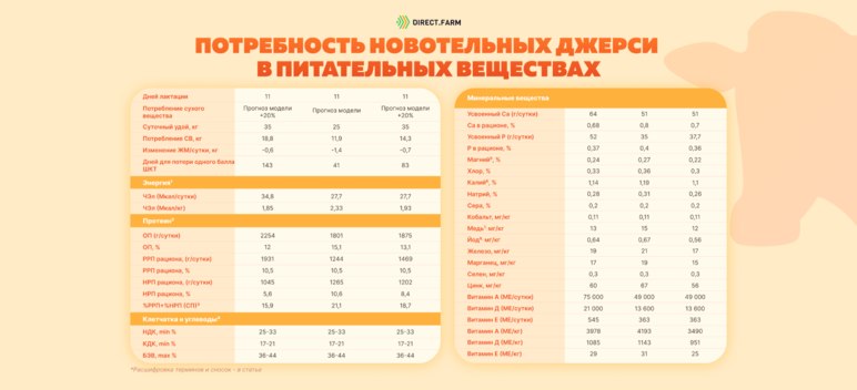 Потребность новотельных джерси в питательных веществах