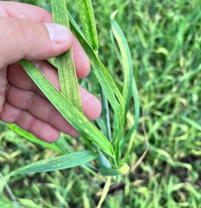 «Это вирусное заболевание - мозаика. Переносится насекомыми - тлями, клещами, блошками и другими. Фунгицид против вирусных инфекций не помогает. Немного улучшают состояние подкормки. Плохо зараженные растения чувствуют себя в сухую жаркую погоду. Бороться необходимо с помощью севооборота и ранних инсектицидных обработок. Возможно, в предыдущий год на этом поле были также зерновые. Нынче из-за сухой погоды будет, скорее всего, массовое заселение вредителями. По возможности советую всем приготовиться делать обработку культур инсектицидами. Уже появились блошки на зерновых и крестоцветных, очень много тли на разных культурах. Наверняка будет злаковая муха на яровых зерновых.»