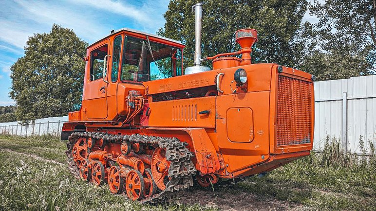 Что теперь можно выделить, для тех кто не в курсе, начнём с начала. Трактор конструктивно схож с трактором ДТ-75 производства ВгТЗ модификаций ДТ-75МВ, ДТ-75Н, ДТ-75В. Отличается наличием в трансмиссии гидротрансформатора расположенным между сцеплением и коробкой передач, более мощным двигателем с турбокомпрессором и охлаждением нагнетаемого воздуха (интеркулер), более широкими гусеницами, наличием гидронатяжителей гусениц, коробкой передач, опорными катками большего диаметра. Также в улицы его можно узнать по более длинному моторному отсеку по сравнению с Дт-75. Двигатель установлен V образный смд 66 мощностью 170 лошадиных сил. Выпускался трактор с 1986 по 1992 год и модификация дт175м с 1992 по 1994 год. Всего выпущено порядка 16000 экземпляров. Масса трактора было 8 тонн.