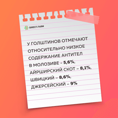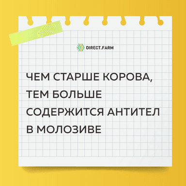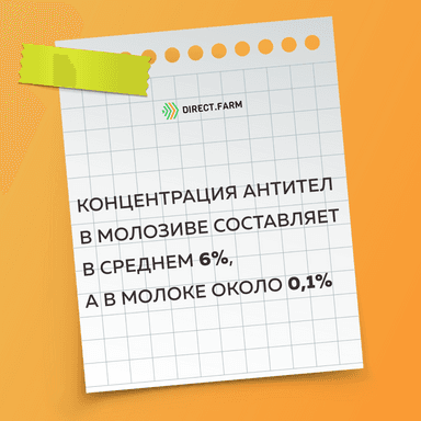 🔸Интересно: антитела проникают из крови коровы при секреции в молозиво только за несколько дней до отела. Концентрация антител в молозиве составляет в среднем 6%, для сравнения, в молоке концентрация антител составляет около 0,1%.