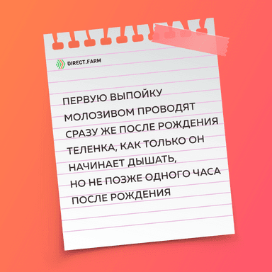 Первое кормление необходимо произвести сразу же после рождения теленка, как только он начинает дышать, но не позже одного часа после рождения.