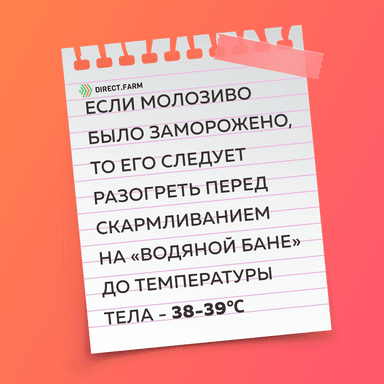 Если молозиво было заморожено, то его следует разогреть перед скармливанием на «водяной бане» до температуры тела - 38-39℃ и выпаивать из ведерка или бутылки, снабженной чистой соской.