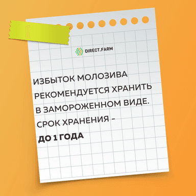 Избыток молозива рекомендуется хранить в замороженном виде. Срок хранения - до 1 года.