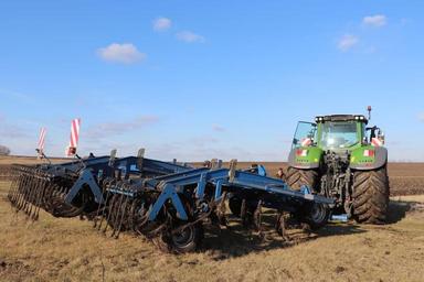 ·«Средние универсальные культиваторы. У нас в хозяйстве Хатценбихлеры 6-ти метровые, если не ошибаюсь. Под трактора 180-200л.с. У них уже идут S-образные стойки, которые отлично разбивают грудку и рыхлят почву. Не уплотняют сильно почву. Тут уже идет позади лишь сдвоенный блок катков, а спереди лап идет каток трубчатый, который помогает лучше выдерживать заданную глубину обработки. Это очень важно перед посевом. Позади же идут планчатые катки, которые добивают грудку сухую, вспушивают немного верхний слой почвы.»