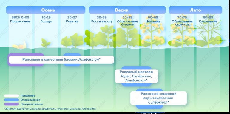 Применение фунгицидов и инсектицидов в посевах рапса