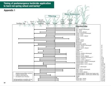 Перевод данных американских коллег по окнам применения различных действующих веществ гербицидов и их сочетаний на пшенице и ячмене.