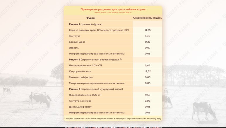 Нормы кормления для 2го сухостоя 🐄🐃🐂
