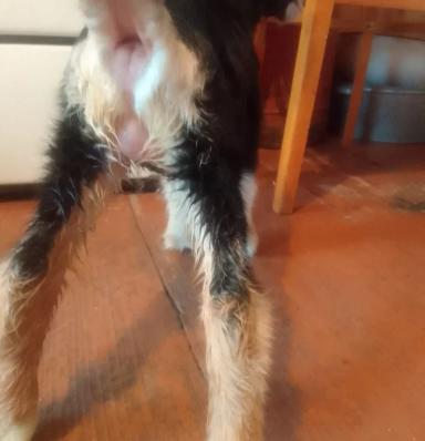 Анамнез: Коза окотилась двойней - козликом и козочкой. Новорожденные показались здоровыми, но на 5-й день после рождения у козочки выявлено крупное пузыревидное образование, выступающее из средней линии промежности, наполненное жидкостью. Отмечаются проблемы с мочеиспусканием, болевые ощущения при испражнении, недержание. Козлик здоров, без аномалий.