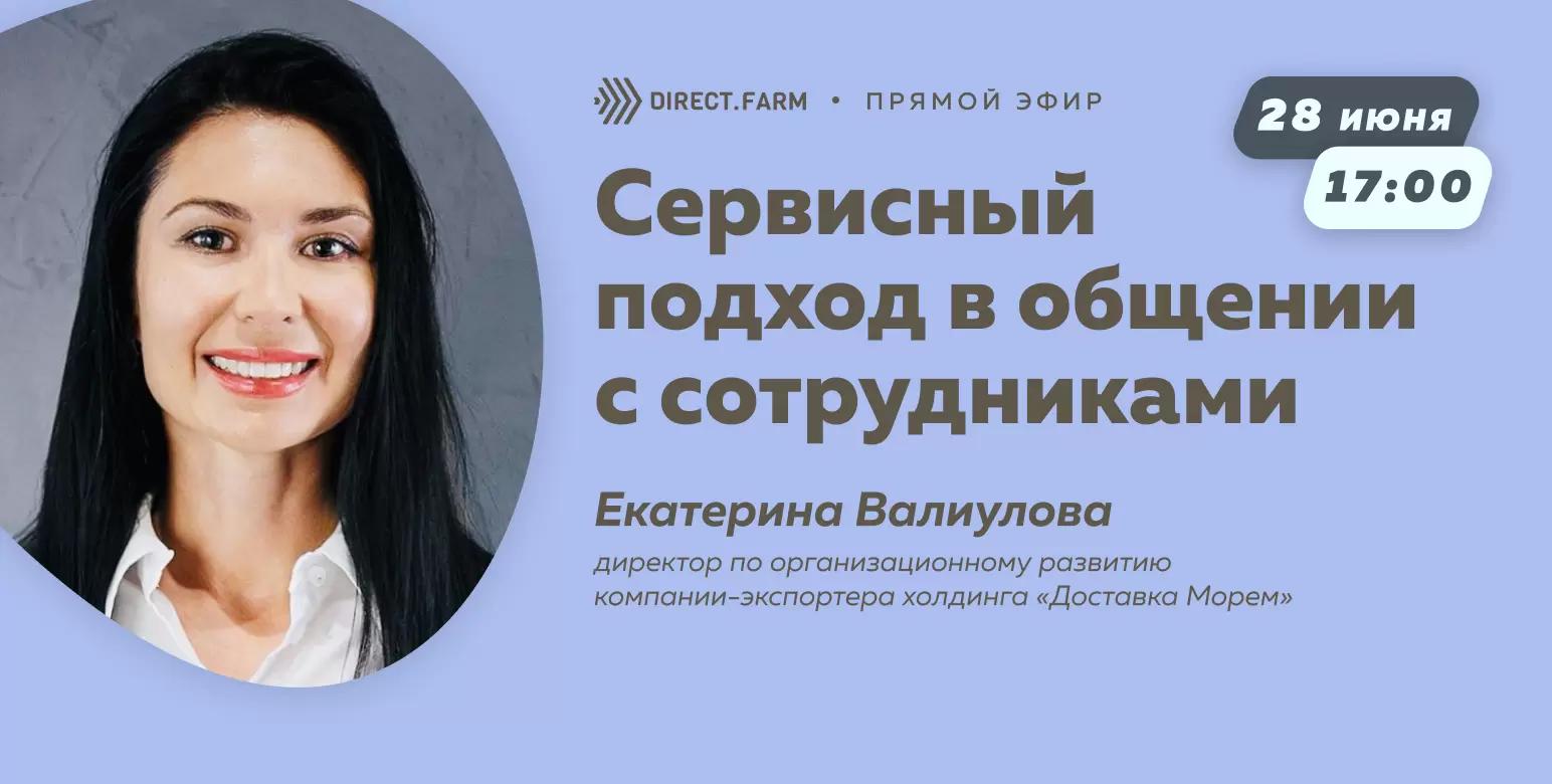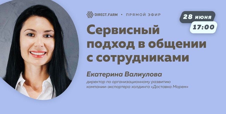 Коллеги, добрый день! Уже завтра, 28 июня в 17:00 Екатерина Валиулова, директор по организационному развитию компании-экспортера холдинга «Доставка Морем» расскажет про сервисный подход к управлению в сельском хозяйстве.