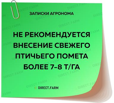 Перепревший птичий помет рекомендуют вносить в количестве 30-50 т/га.