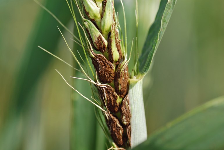 «Мицелий возбудителя пыльной головни пшеницы (гриб Ustilago tritici) сохраняется в семенах, которые внешне выглядят здоровыми. Он является источником инфекции в год посева и замедляет прорастание семян. Кроме того, патоген отчасти снижает показатель массы тысячи семян.