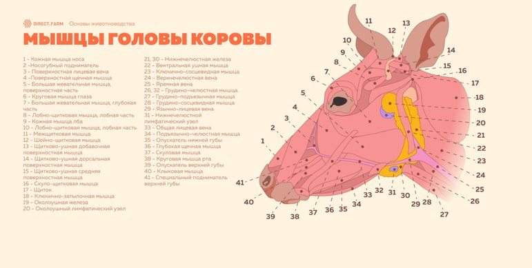 Наглядная инфографика расположения мышц головы у коровы прикреплена к публикации.