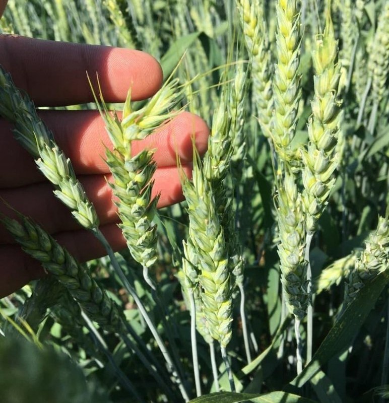 На наших полях посеяна смесь сортов Торрилд и Немчиновская-57. Торрилд дает урожай, Немчиновская-57 - качество. В итоге урожай и качество. Так вот скрученные колосья свойственны только Торрилду, на Немчиновской-57 такого закручивания листьев не наблюдается.