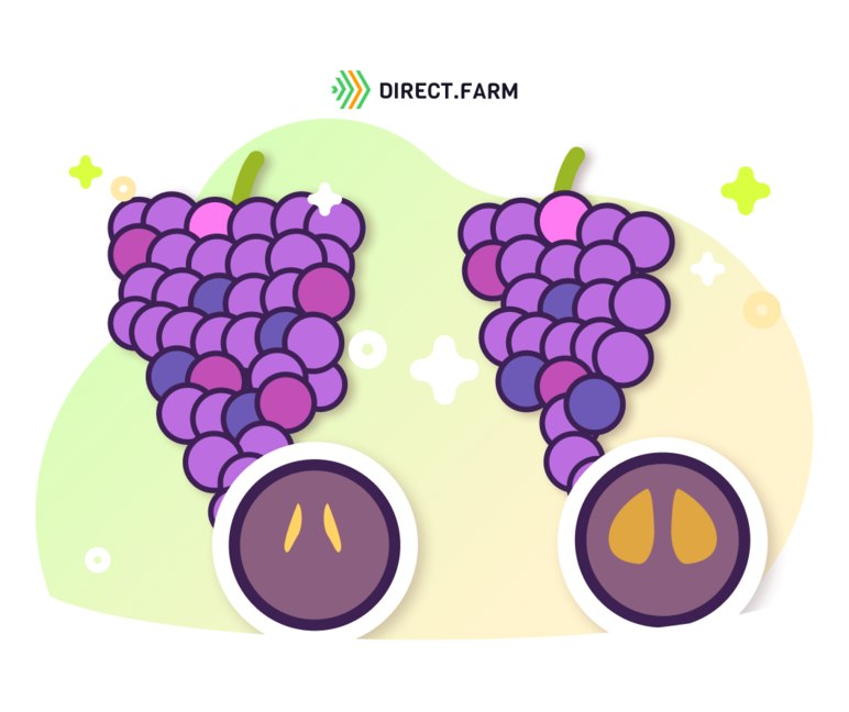 - Сорта со стеноспермокарпическим типом бессемянности ягод. Характерная особенность сортов группы – мелкоплодность, связанная с отсутствием или недоразвитием семян. Нормальный процесс оплодотворения у бессемянного винограда нарушен. У ряда сортов (Кишмиш лучистый, Кишмиш таировский и др.) оплодотворение хотя и происходит, но рост семян в дальнейшем быстро прекращается.