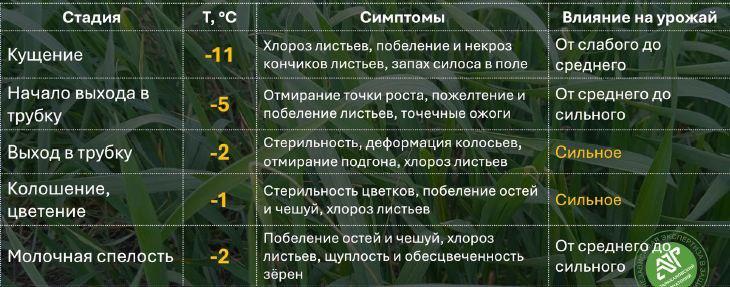 Если же у вас начало фазы выхода в трубку, и колос ещё не вышел над поверхностью земли, то земля является буфером и рисков значительно меньше. Можно пережить до -5.