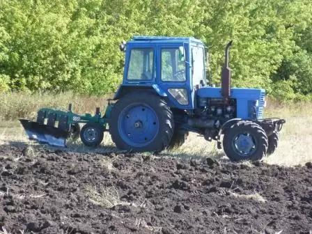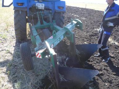 Среди тракторов, используемых на пахотных операциях имеют место тракторы относящиеся по Российской классификации к тракторам тягового класса 1,4, мощность двигателя которых не превышает 75кВт. К таким тракторам относятся и МТЗ-80, МТЗ-82. При работе таких тракторов с плугами имеются некоторые особенности, колеса правой стороны трактора перемещаются в борозде, а левые колеса движутся по невспаханной части поля. В этом случае трактор движется с наклоном в сторону вспаханного поля и на правые бороздовые колеса распределяется большая часть массы трактора. Следовательно, левые и правые движители имеют разные сцепные свойства. Правые колеса движущиеся по открытой борозде производят дополнительное уплотнение дна борозды, что негативно сказывается на агрофизических свойствах почвы. Для исключения данных недостатков разработали лемешно-отвальный плуг общего назначения ПБС-3М, агрегатируемый с МТЗ-80 в двухкорпусном исполнении, с МТЗ-82 в трехкорпусном. При работе МТЗ-82 с плугом ПБС-3М всеми колесами движется по необработанному полю, рядом с открытой бороздой. При работе МТЗ-80 с рамы плуга снимается первый корпус, а опорное колесо переносится внутрь рамы. В таком исполнении также трактор движется всеми колесами по полю. Ширина плуга в трехкорпусной комплектации составляет 1,8м. в двухкорпусной 1,2м. Производительность агрегатов соответственно составляет 1,1-1,5 и 0,9-1,2га/ч.