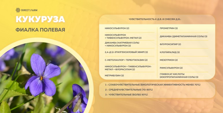 Против фиалки полевой на кукурузе зарегистрированы следующие д.в.: