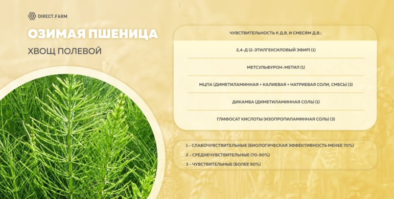 Против хвоща полевого на озимой пшенице зарегистрированы следующие д.в.: