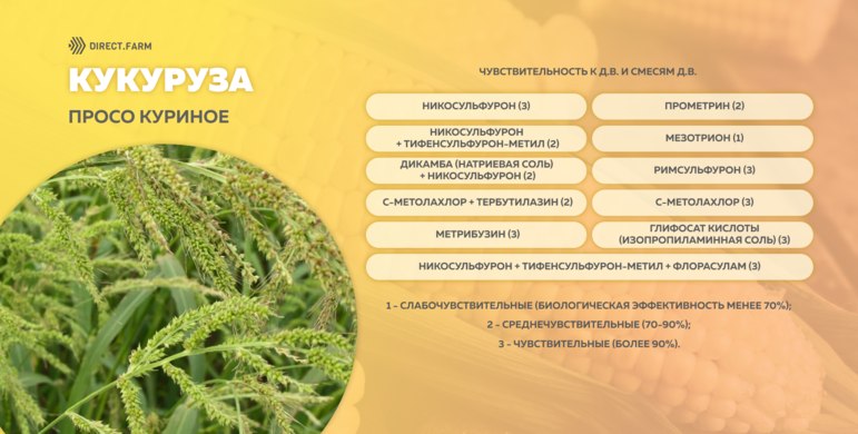 Против проса куриного на кукурузе зарегистрированы следующие д.в. и смеси д.в.:
