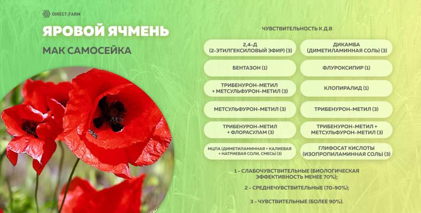 Шпаргалка чувствительности мака самосейки к д.в. гербицидов