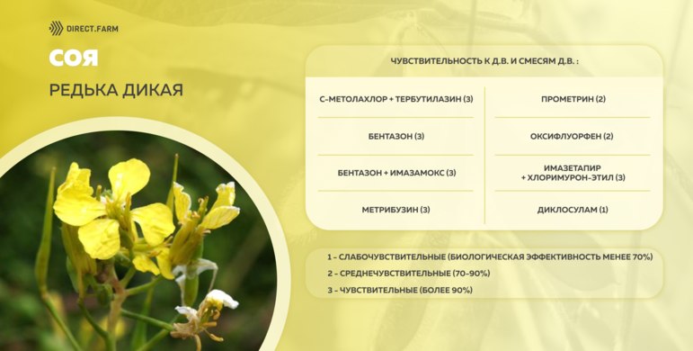 Против редьки дикой на сое зарегистрированы следующие д.в.: