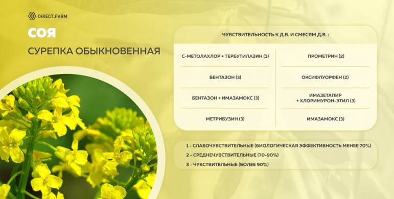 Против сурепки обыкновенной на сое зарегистрированы следующие д.в. и смеси д.в.: