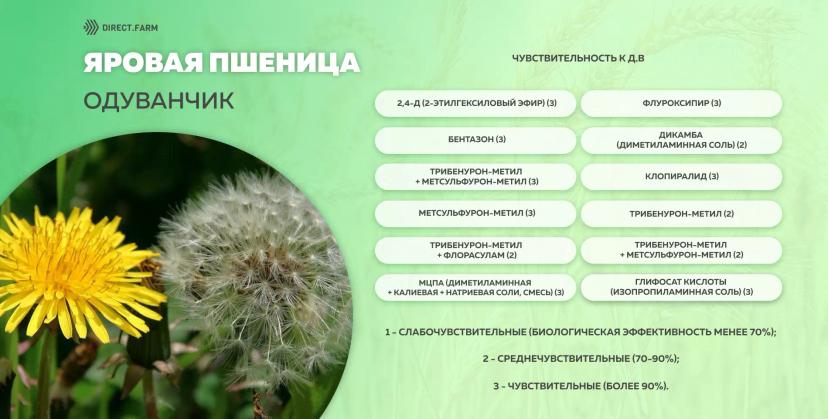 Шпаргалка чувствительности одуванчика к д.в. гербицидов