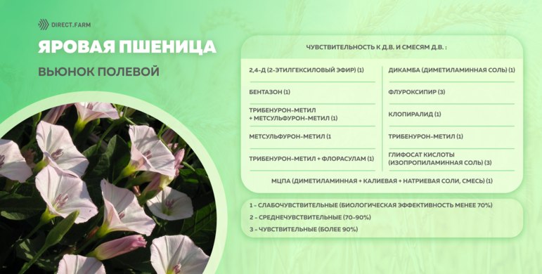 Против вьюнка полевого на яровой пшенице зарегистрированы следующие д.в. и смеси д.в.:
