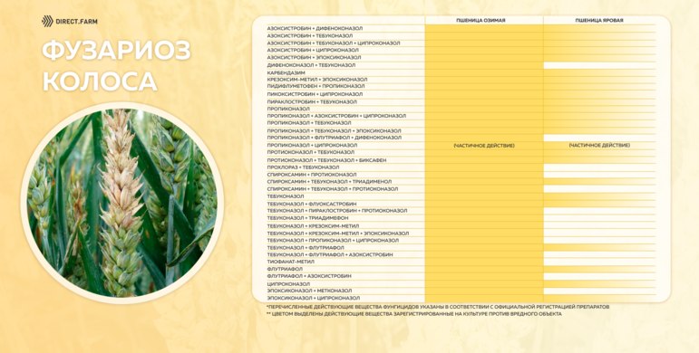 - Поражение фузариозом ведёт к потере массы зерновки, что может снизить урожайность на 30%.