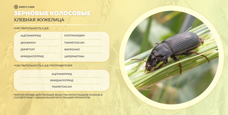 Инсектицидные действующие вещества против хлебной жужелицы на зерновых колосовых:
