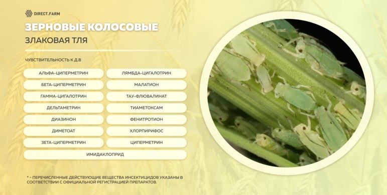 Инсектицидные действующие вещества против злаковой тли на зерновых колосовых:
