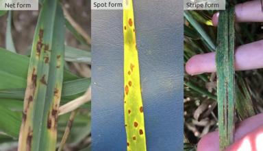 Фунгициды, используемые во время основного опрыскивания, могут защитить посевы от сетчатой пятнистости.