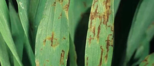 Листья часто имеют пожелтение, связанное со всеми этими типами поражения, особенно при тяжелых симптомах. Поздние атаки также могут поражать чешуи и ости, вызывая появление темно-коричневых пятен и полос.