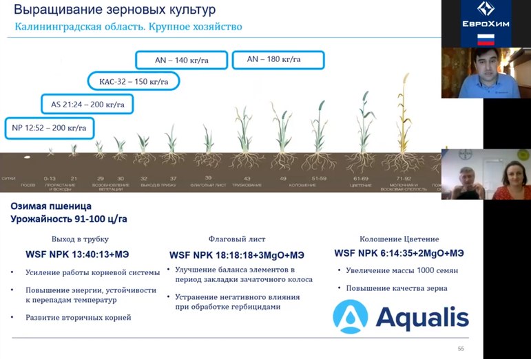 Рассмотрели схему питания для зерновых культур с применением удобрений Aqualis по разным фазам культур