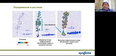 Эксперт наглядно продемонстрировала в презентации необходимость такого свойства фунгицида как устойчивость к смыванию дождем, а также напомнила об основных правилах применения фунгицидов