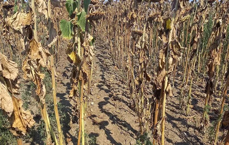 В Ставропольском крае в течении полутора месяцев отсутствовали осадки, а температура поднималась до +40℃, это привело к быстрому созреванию пропашных культур на полях. Уже к середине августа на полях подсолнечника, кукурузы, сахарной свеклы обозначились трещины в почве, растения теряли тургор и листву.