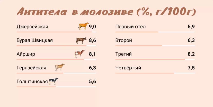 Концентрация антител в молозиве коров