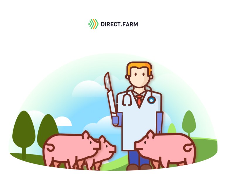 - Забрызгайте ранку антибактериальным спреем, промаркируйте поросенка.