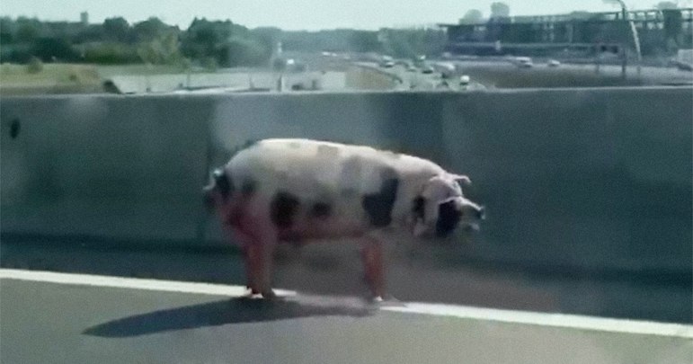 Внезапное... На Дмитровке при съезде на МКАД стоит свинья